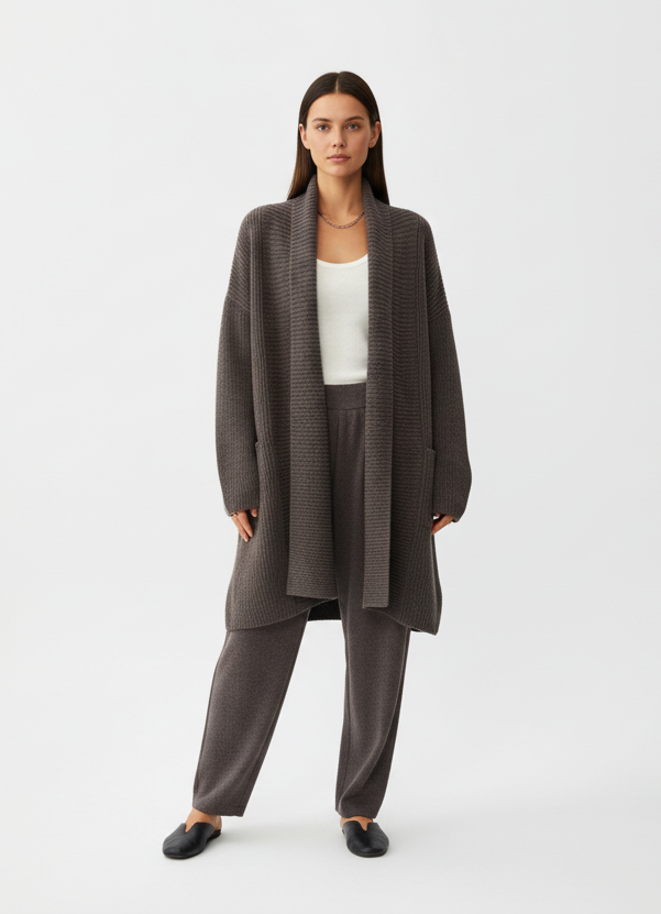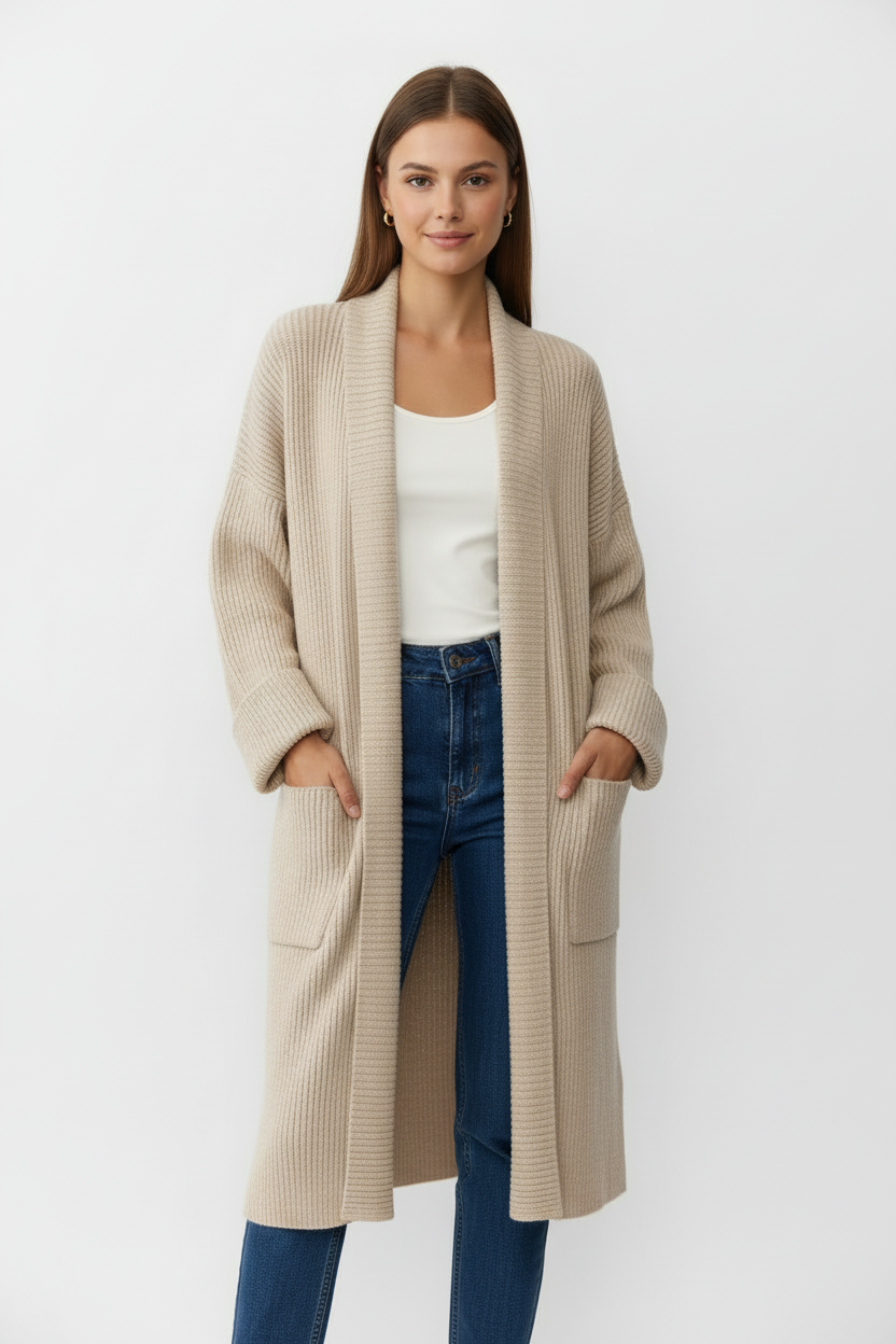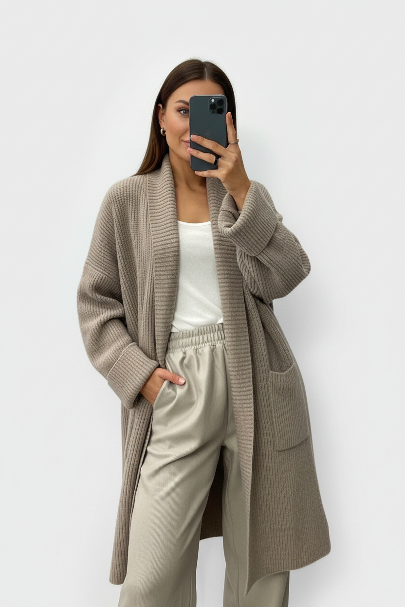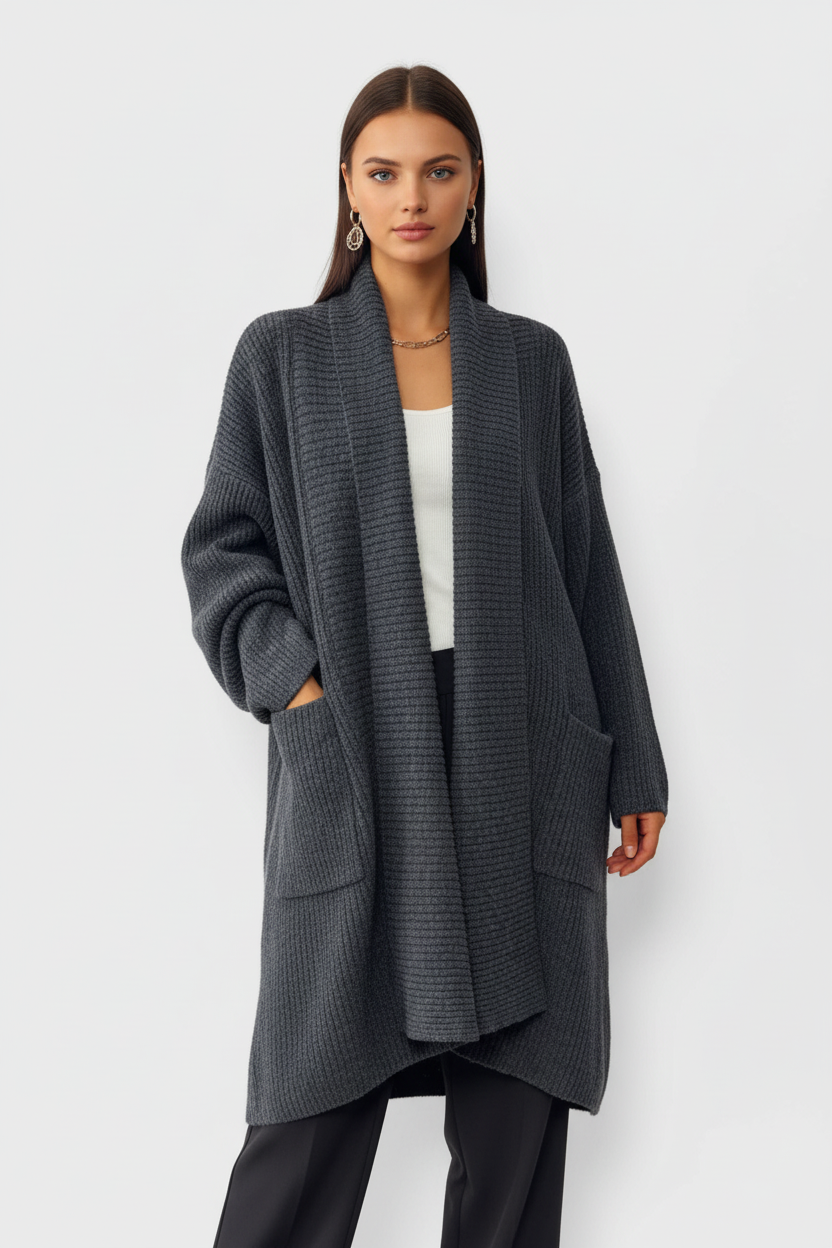 Margareta je ztělesněním moderní linie a maximálního pohodlí. Tento dlouhý cardigan s výrazným svislým žebrováním opticky prodlužuje postavu a dodává outfitu sofistikovaný řád. Je vyroben z jemného úpletu, který krásně splývá a díky praktickým kapsám se stane vaším nejoblíbenějším kouskem pro stylové vrstvení.