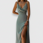 Aneta – Saténové maxi šaty s vysokým rozparkem