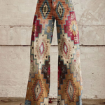 Vystupte z řady s těmito jedinečnými džínami, které v sobě snoubí tradiční vzory s moderním střihem. Celoplošný etnický motiv inspirovaný jihozápadní estetikou dodává kalhotám hloubku a texturu, zatímco vysoký pas a široké nohavice „wide-leg“ vytvářejí neodolatelnou retro siluetu. Jsou vyrobeny z pevného, kvalitního denimu, který drží svůj tvar a dodá vašemu outfitu okamžitý nádech luxusní bohémské elegance.
