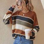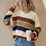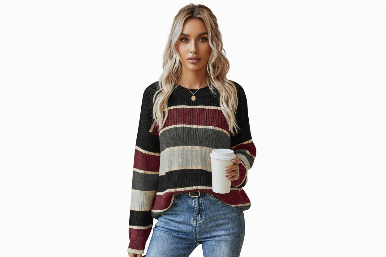 Jana - Pohodlný Pruhovaný Svetr s dlouhým Rukávem a kulatým výstřihem